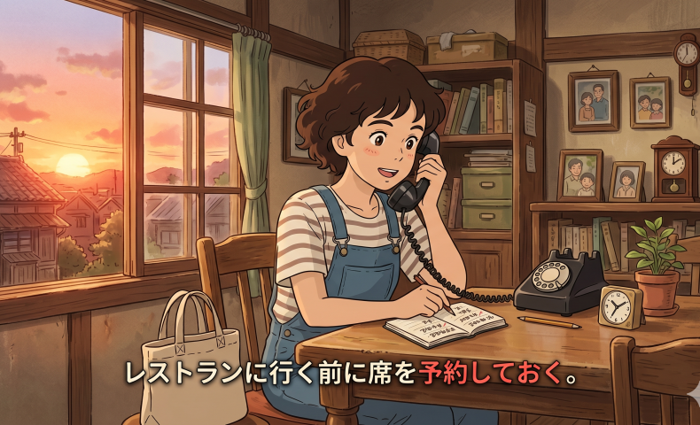 (2) レストランに行く前に席を予約しておく / 予約しておきます。