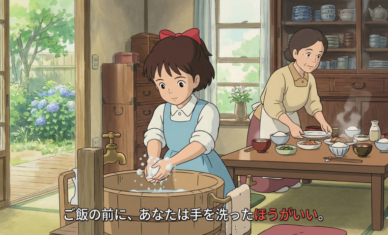 (5) ごはんのまえに、あなたは てを あらったほうがいい / あらったほうがいいです。