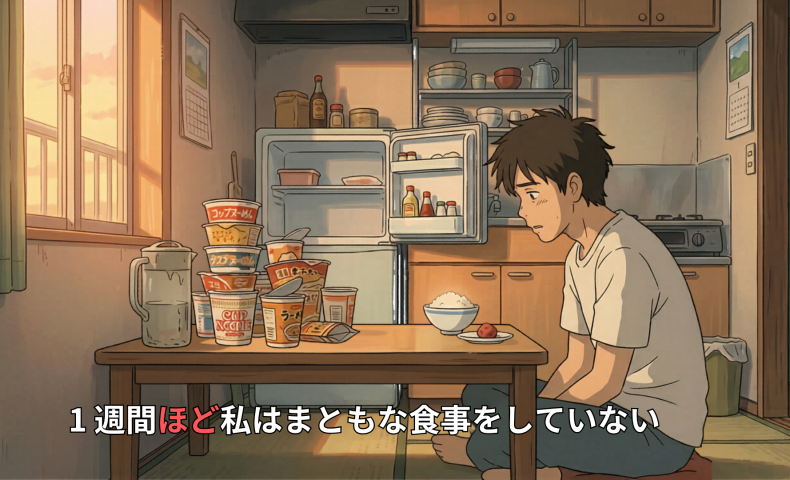 (2)1週間ほど私はまともな食事をしていない / 食事をしていません。