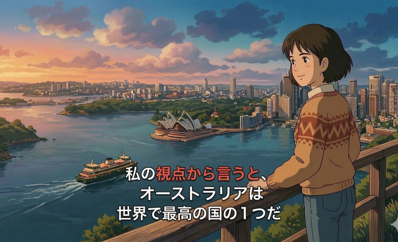 (2) わたしの してん からいうと、オーストラリは せかいで さいこうの くにの ひとつだ / ひとつです。