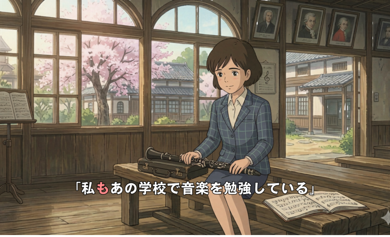 (8) 私もあの学校で音楽を勉強している / 勉強しています。