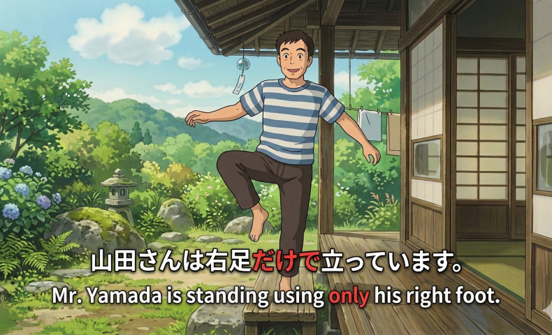 (5) Yamada-san wa migi-ashi dake de tatte iru / tatte imasu.