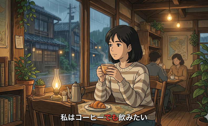 (1) わたしはこーひーでものみたい / のみたいです。