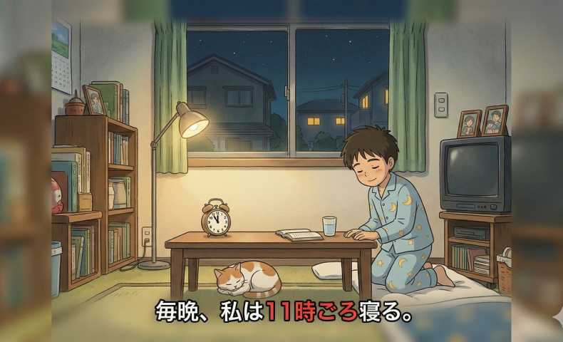 (2) まいばん、わたしはじゅういちじごろねる / ねます。
