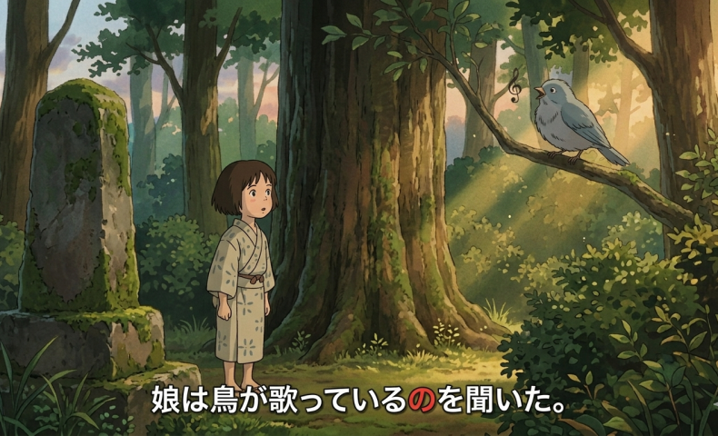 (5) 娘は鳥が歌っているのを聞いた / 聞きました。