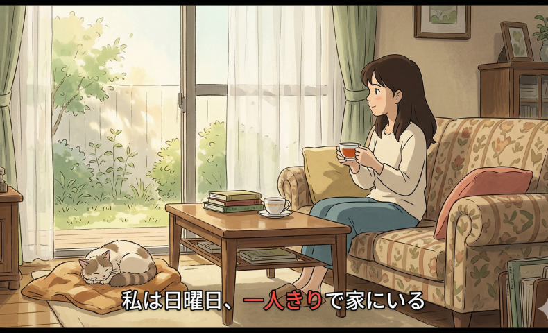(2)私は日曜日、一人きりで家にいる / います。