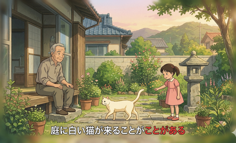 (4)庭に白い猫が来ることがある / 来ることがあります。