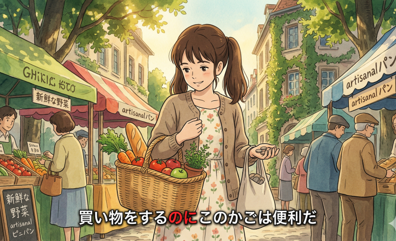 (6) 買い物をするのにこのかごは便利だ / 便利です。