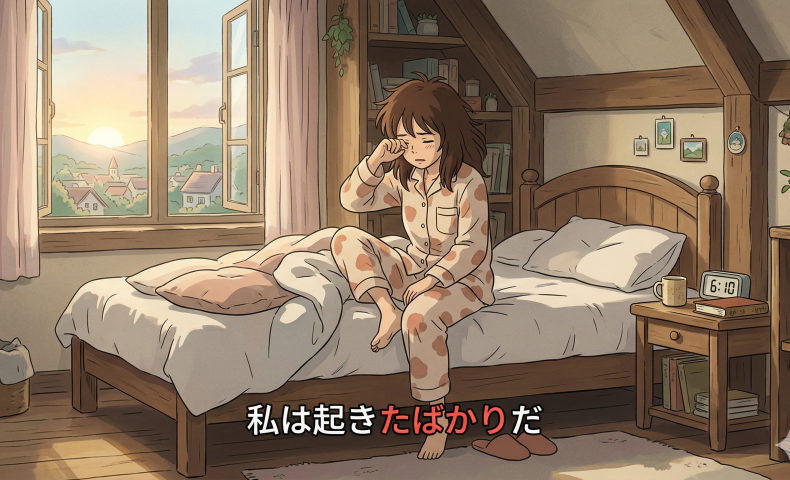 (1) わたしはおきたばかりだ / おきたばかりです。
