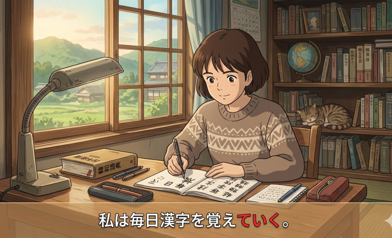 (1) 私は毎日漢字を覚えていく / 覚えていきます。