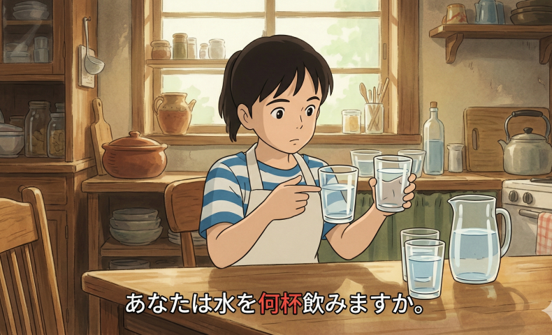 Q. Anata wa mizu o nan-bai nomimasu ka.