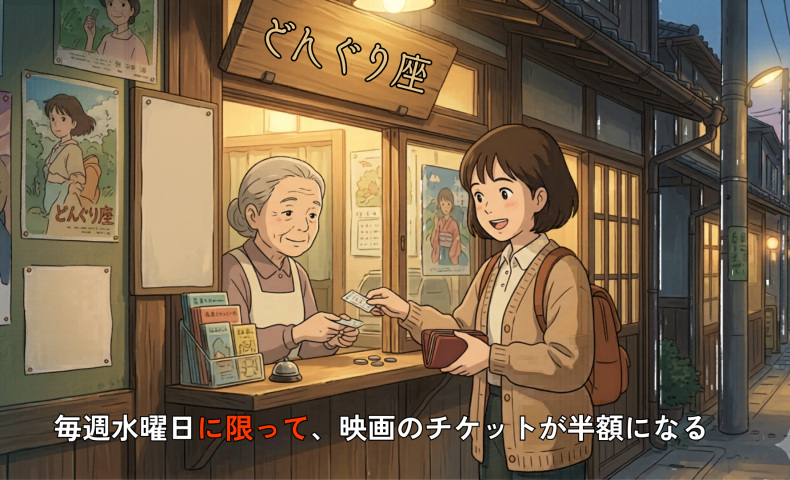 (6) 毎週水曜日に限って、映画のチケットが半額になる / 半額になります。