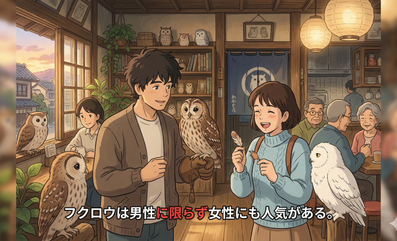 (3) フクロウは男性に限らず女性にも人気がある / 人気があります。