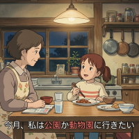 (4) あめにつけ ゆきにつけ、いもうとは まいにち いちじかん さんぽをする / さんぽをします。