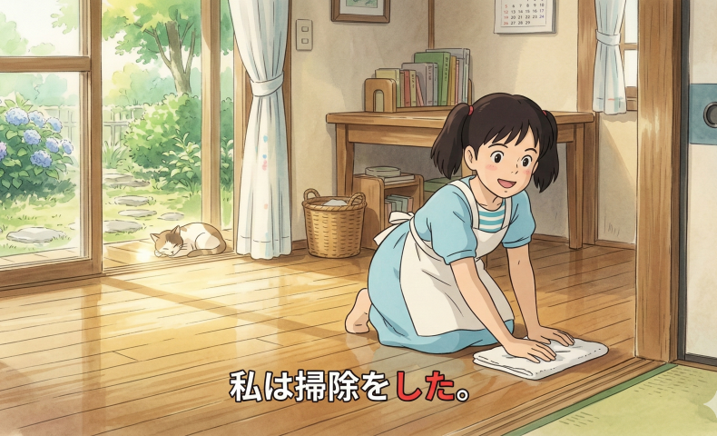 (2) わたしはそうじをした。