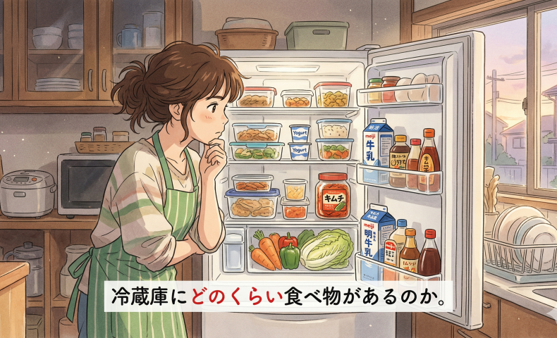 (3) れいぞうこに どのくらい たべものが あるのか / ありますか。
